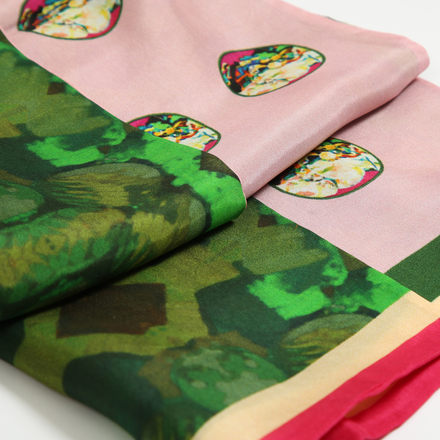 Pink & Green Can be Worn on Two Sides, A Dimension to This Colorful Piece That is Subtle Yet Loud Just Like The Art That Inspired it. Drape it Around Your Neck or Tie Up Your Hair With it, The Versatile Accessory Can be Used to Do So Much.