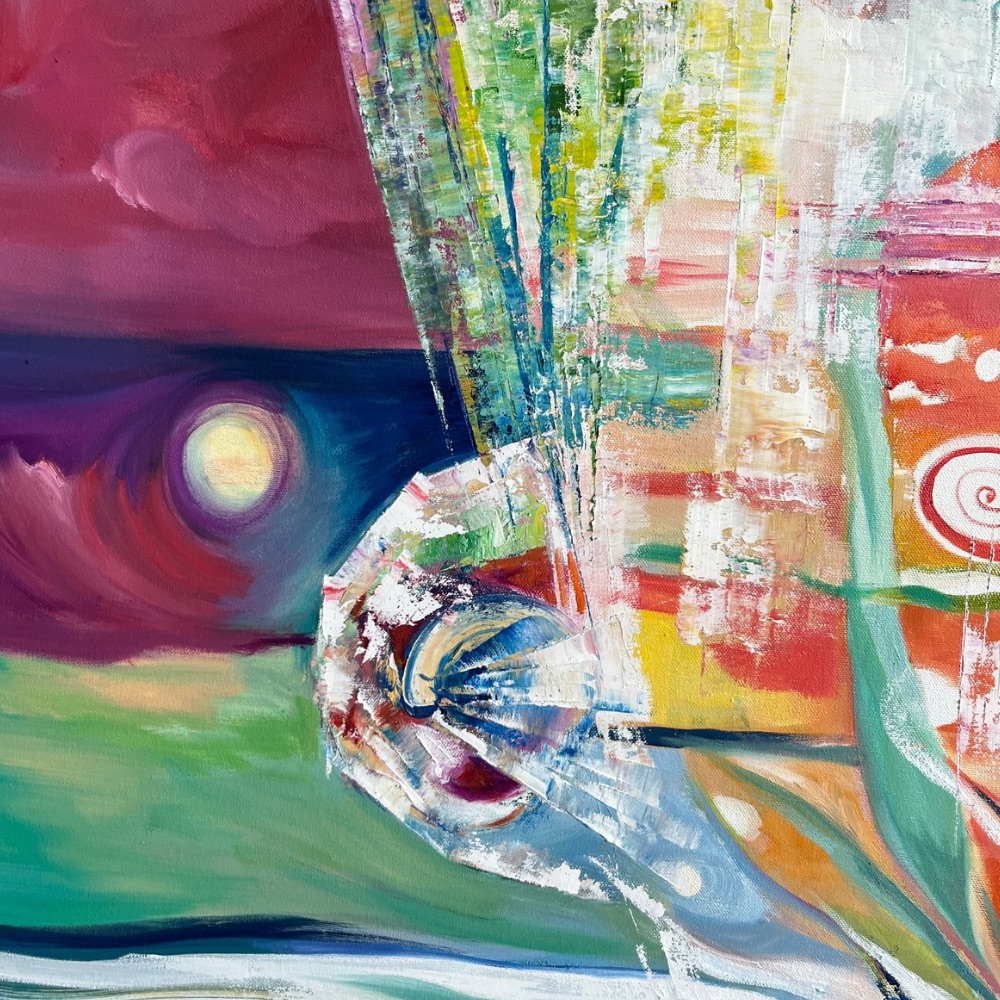 In this painting, I aimed to capture the essence of emotional transcendence, blending abstract with impressionist touches. As I melded oils on canvas, my spirit guided each stroke, creating an immersive experience of vibrant colors and dynamic movements that suggest the upliftment and complex interplay of human emotions. It’s a reflection of inner growth, designed to evoke introspection and a sense of infinite possibilities in the viewer’s space.